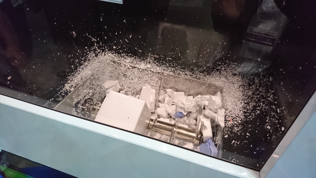 続いては、こちらの機械。なにやら粉々になっていますね。