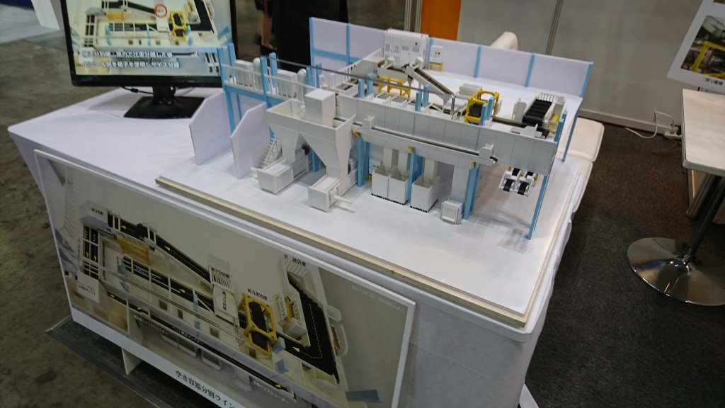 こちらは、空き缶の自動選別ラインの模型です。店舗や会社から出される