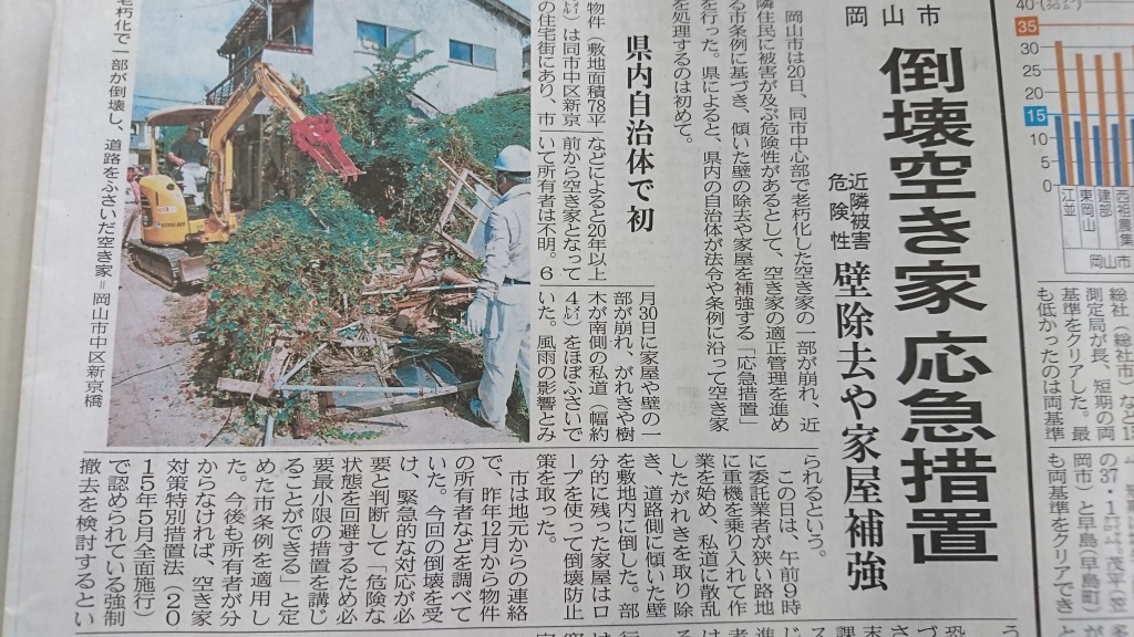 所有者も分からずに何十年と空き家になっていた家が倒壊寸前で、壁が道路に