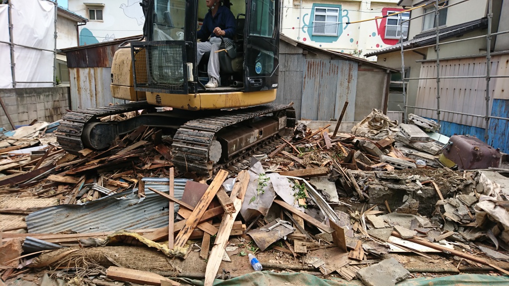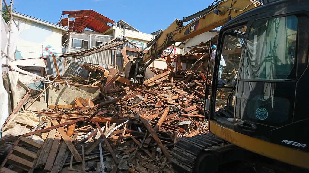 そして、いざ重機を使って取り壊しにかかります。