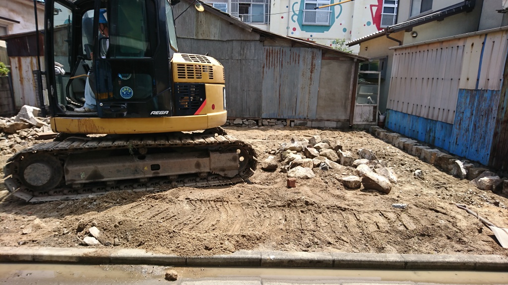 基礎もすっかりなくなり整地の段階まできました。整地をするとき
