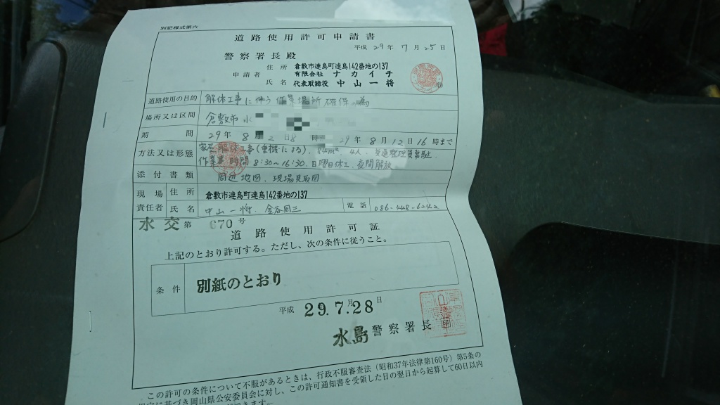 ん。なので、まずはこの許可をとり、近隣の方に挨拶を済ませてか