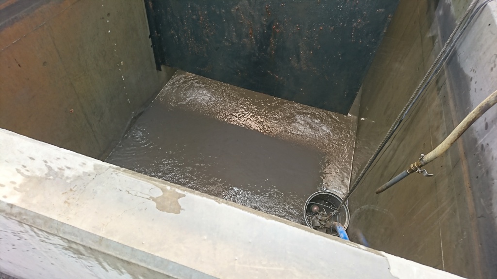 先ほどの吸引車で吸っている様子です。あっという間に中がきれい