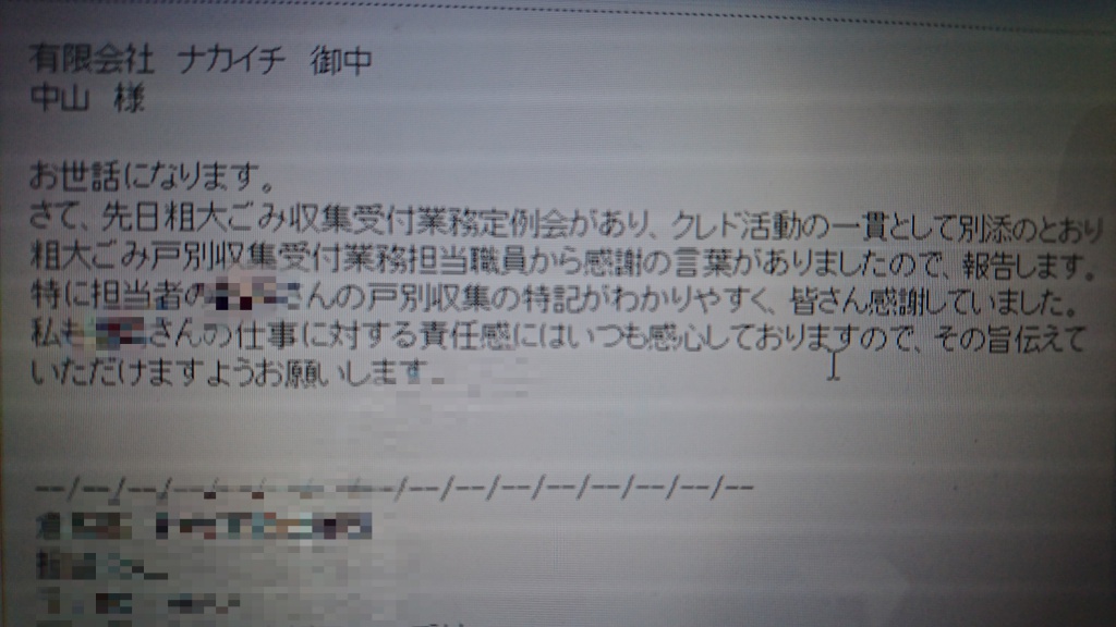 てが当社に対するお言葉ではありませんが、収集業者のN様は当社