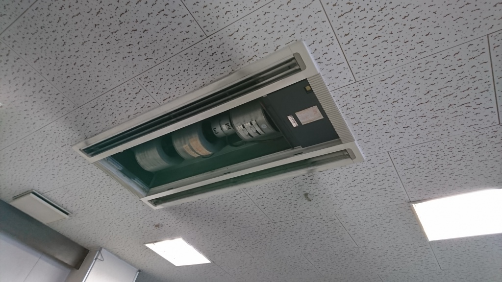 天井のエアコンのフィルターを外しました。