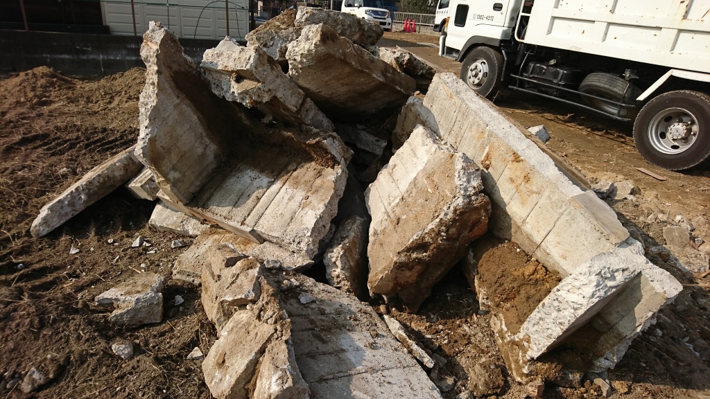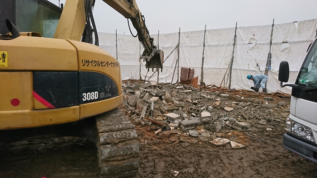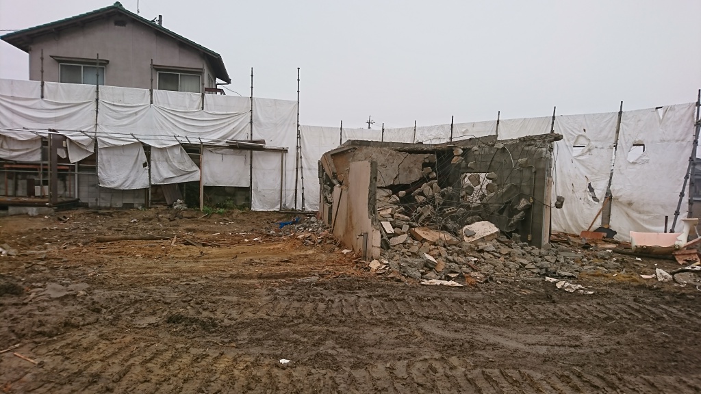 家の隣にあったコンクリート造りの倉庫を壊している様子です。