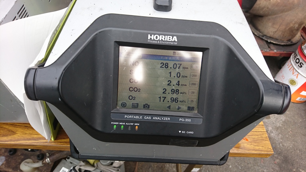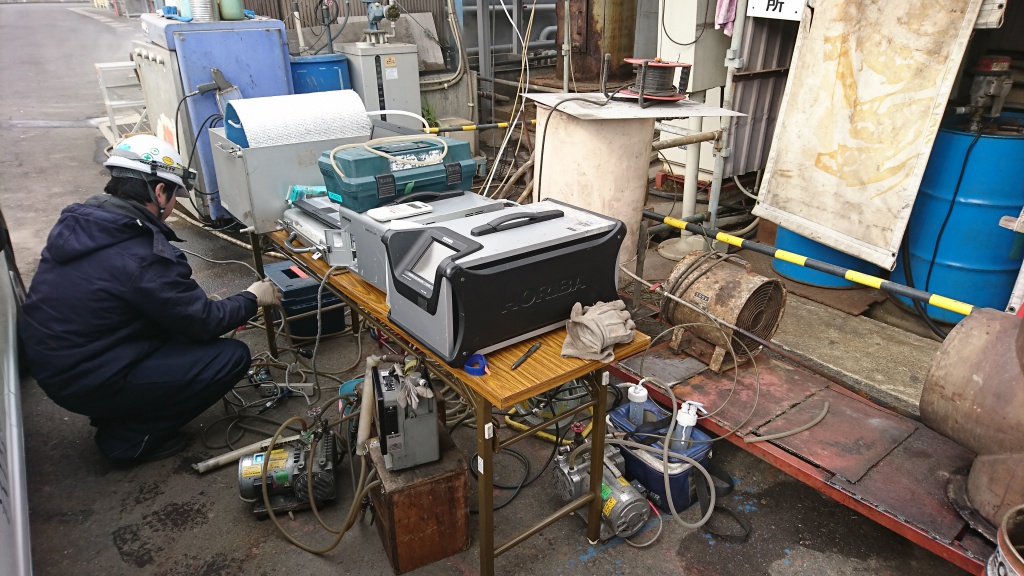4時間かけて排ガスを抜き取り、採取したガスを持ち帰っ