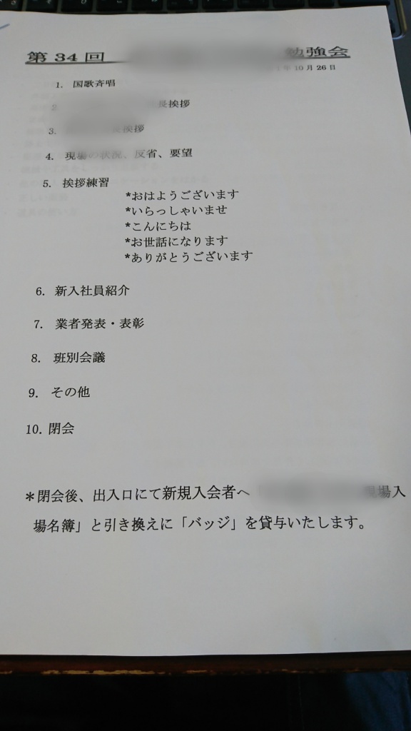 上の写真に載っている挨拶練習では、全員が大きな声で挨拶の