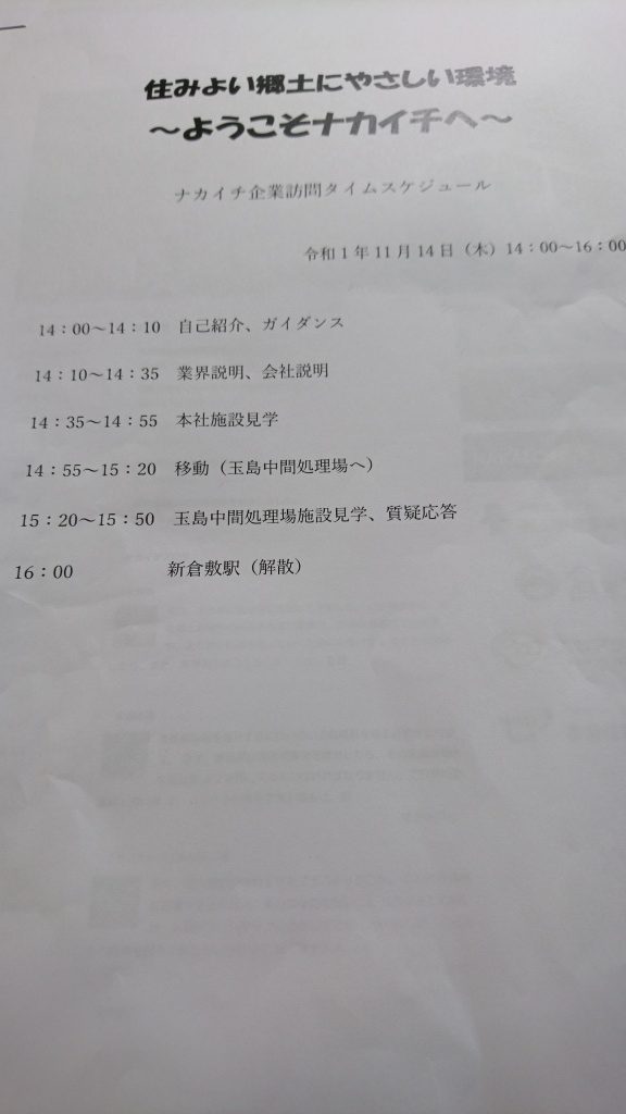本社の施設見学が終わったら、今度は、当社の中間処理場