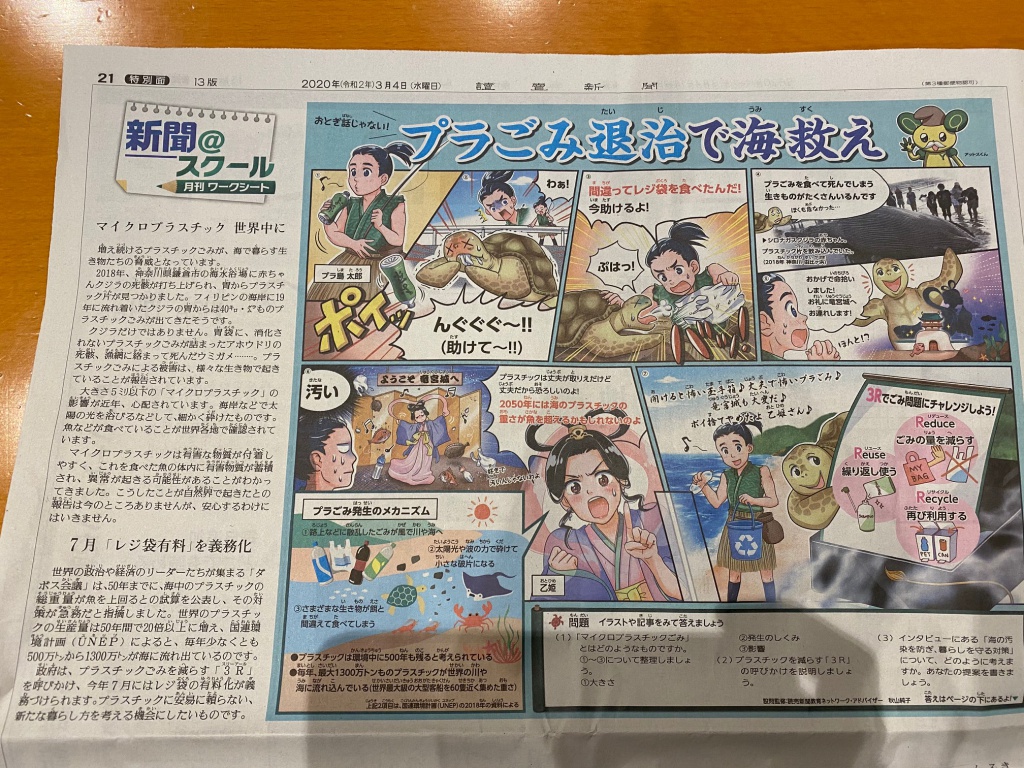 プラスチックの利便性と、便利がゆえに起きる問題を漫画で紹介してい