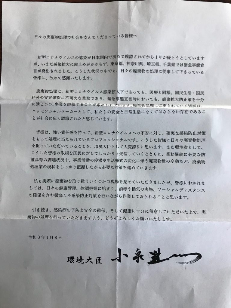 もちろん、当社に直接送ってくれたわけではなく、全国で廃棄物処理に