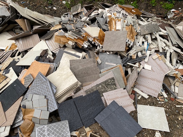 次はこちらの廃棄物。これは家の外壁や土間などに使うタイルです。これ