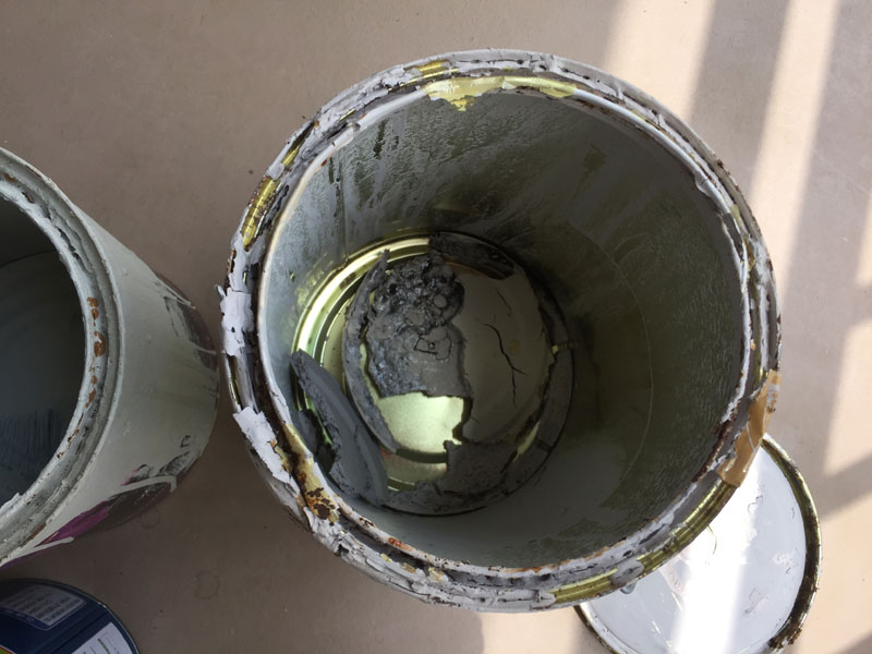 まうと固まった塗料と缶を剥離しないといけませんから、ごみ袋に余っ