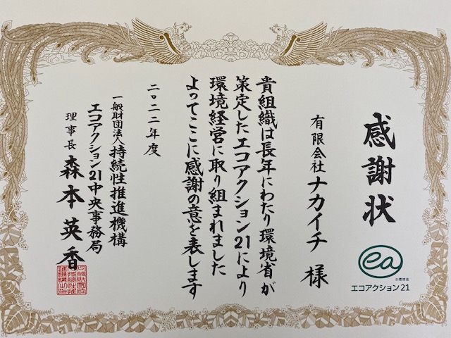 長年の取り組みを評価頂き、感謝状が贈られてきました。