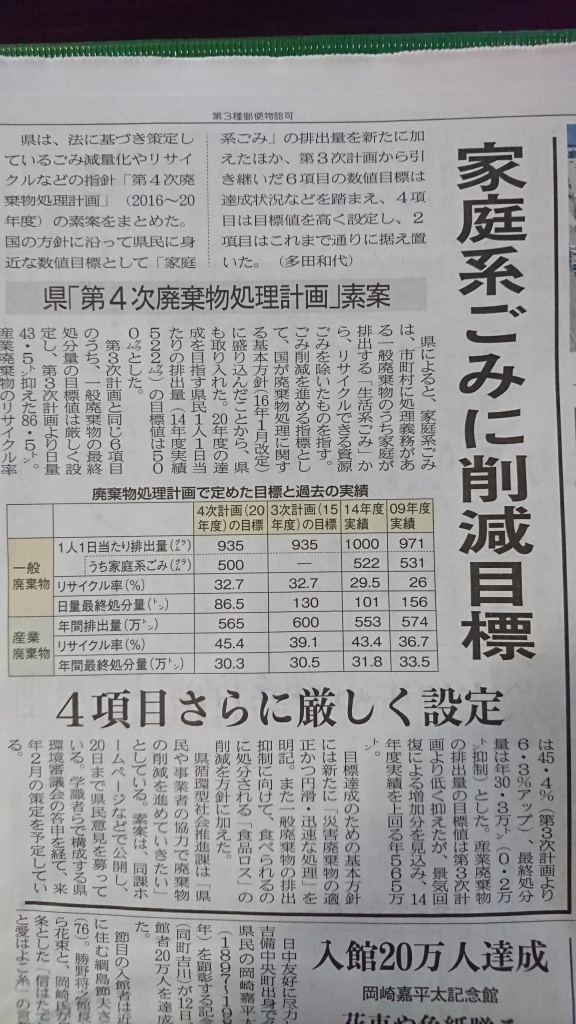 岡山県がこのたび、法に基づいて策定しているごみ減量化やリサイクルなどの
