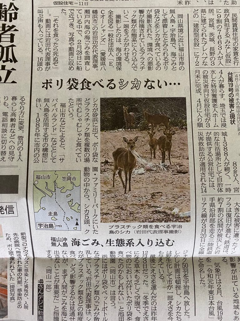 福山市沖の宇治島という無人島で野生化した鹿がプラスチック
